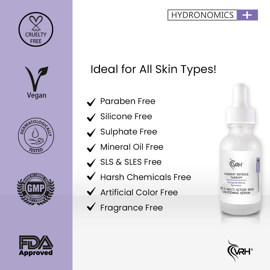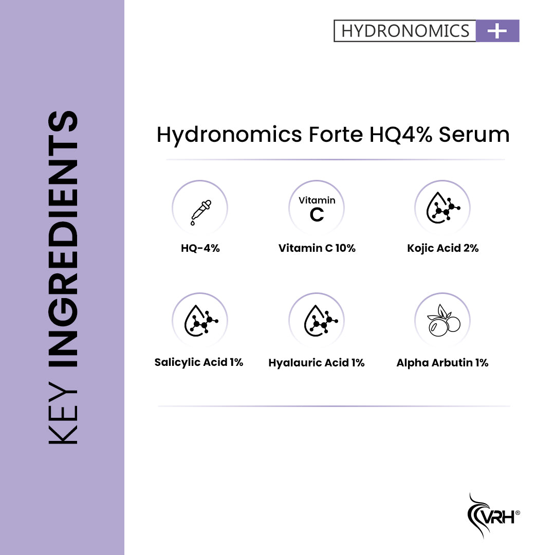 Hydronomics Forte HQ4% Serum is a powerful solution designed to help fade dark spots, smooth skin texture, and brighten complexion with a blend of clinically effective ingredients. This 15ml serum features 4% HQ to directly target pigmentation and discoloration, providing visibly more even skin tone over time. With Vitamin C and Kojic Acid working in synergy, this serum promotes a radiant glow and addresses dullness for a brighter appearance.