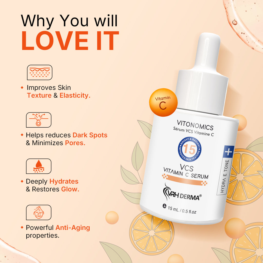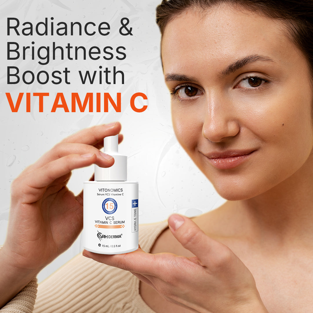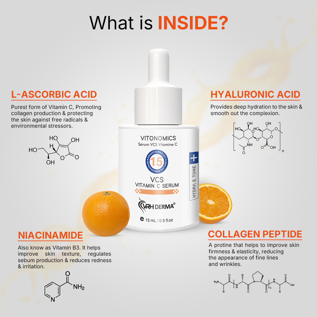 Discover glowing skin with VRH Vitamin C 15% Serum, a powerful antioxidant serum crafted with 15% pure Vitamin C, Vitamin E, and hyaluronic acid. This advanced formula visibly brightens dull skin, diminishes dark spots, and combat early signs of aging, leaving your skin looking radiant, smooth, and youthful. Vitamin C is known for its ability to even out skin tone and promote collagen production, helping to reduce the appearance of fine lines and wrinkles. Paired with Vitamin E, it provides enhanced antioxidant protection against environmental damage, while hyaluronic acid deeply hydrates, plumping the skin and improving elasticity.