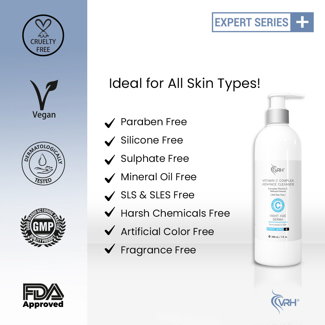 Experience a refreshing cleanse with Vitamin C Complex Advanced Cleanser, a unique formula designed to brighten, hydrate, and smooth your skin. Enriched with L-Ascorbic Acid (Vitamin C), this cleanser effectively removes impurities while delivering powerful antioxidant benefits, helping to improve radiance and protect against environmental stressors. Hyaluronic Acid ensures deep hydration, keeping your skin feeling soft, plump, and moisturized after every wash.
